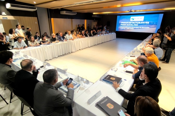A Prefeitura do Natal participou da reunião da bancada federal do Rio Grande do Norte, realizada no Hotel Barreira Roxa, na manhã desta segunda-feira (10). O encontro reuniu deputados federais e estaduais, senadores, prefeitos e representantes de órgãos públicos para discutir a destinação de emendas parlamentares e apresentar projetos estratégicos para 2026.
