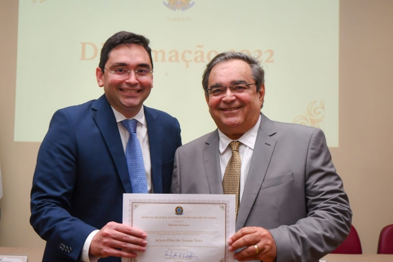 Os diplomas foram assinados pela presidência do TRE-RN e entregues aos eleitos por membros da Corte. A cerimônia foi conduzida pelo desembargador Cornélio Alves e contou com a participação do Coral do Tribunal Eleitoral, que interpretou o hino dos 90 anos de criação da Justiça Eleitoral e o Hino Nacional. Para o desembargador, este é o momento de sacramentar a democracia e “atestar o voto legitimado pela população do Rio Grande do Norte”.